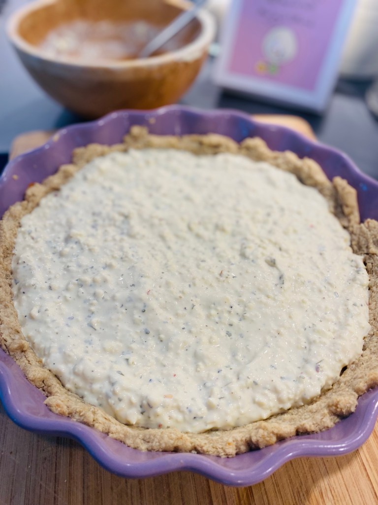 FörgrĂ€dda pajbotten i 10 minuter – lĂ„t vila ca 5-10 minuter innan du hĂ€ller pĂ„ fyllningen