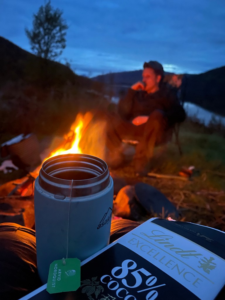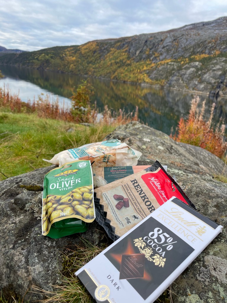 Snacks är alltid bra att ha med! Kalla grillkorvar, kokoschips, ren/älgkorv, oliver och mörk choklad är våra favoriter!